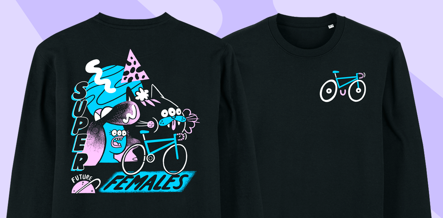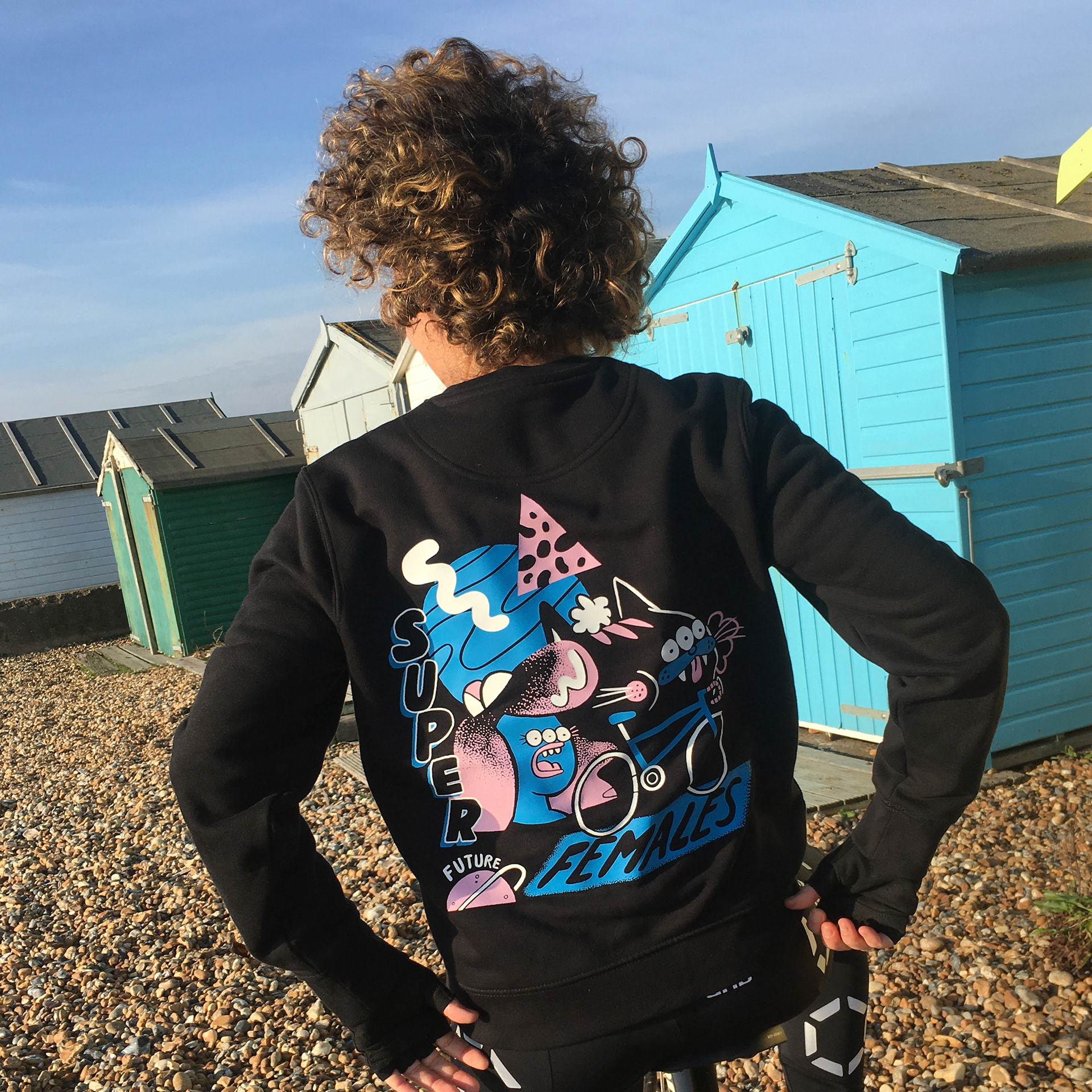 So… For the powerful peddlers and those creative, energetic ‘I’ll get out of bed at 5am’ kinda cyclists, I wanted to create a design that’s bright, bold and packs a punch, just like we can on our rides. I love seeing a surge in the number of women cycling, and whilst in many ways there’s been real progress, there’s still plenty of awareness needing to be raised. I might not change the world with a sweater, but I’ll get behind anything that celebrates the strength and determination of female riders.”