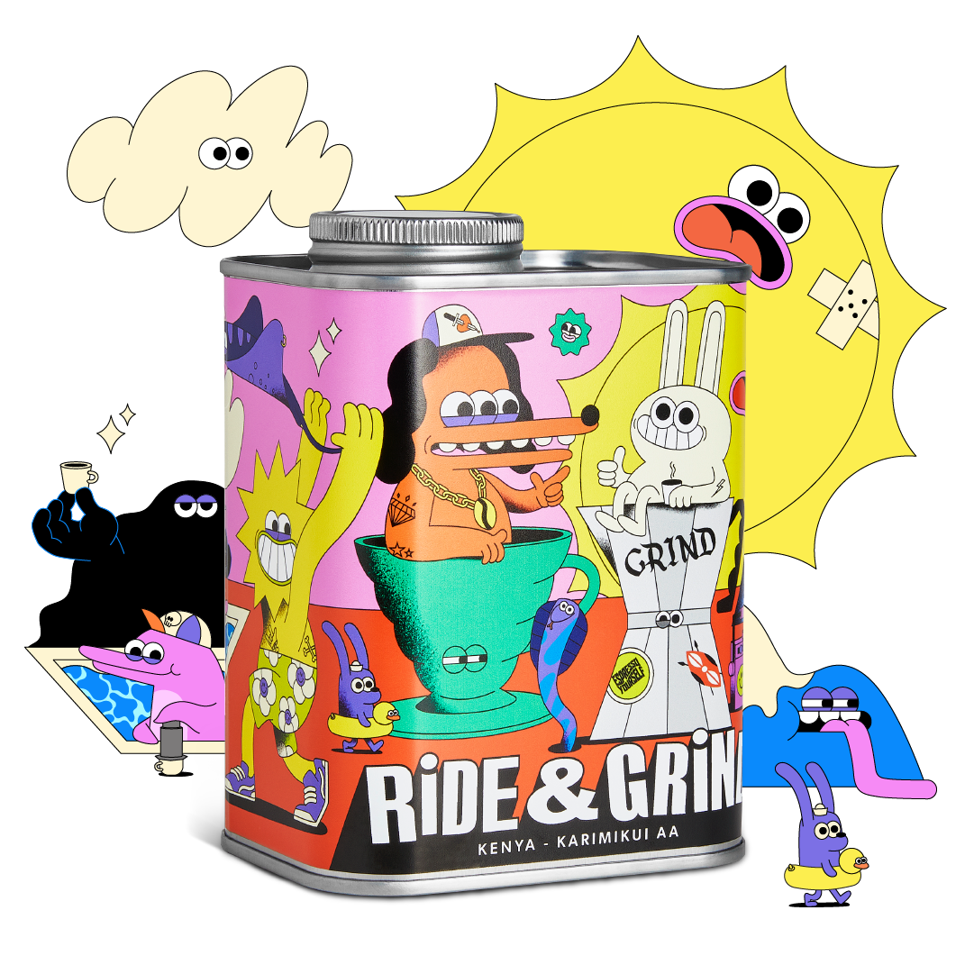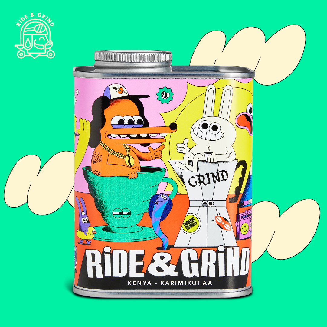 Coffee label illustration in collaboration with Ride & Grind Coffee Co