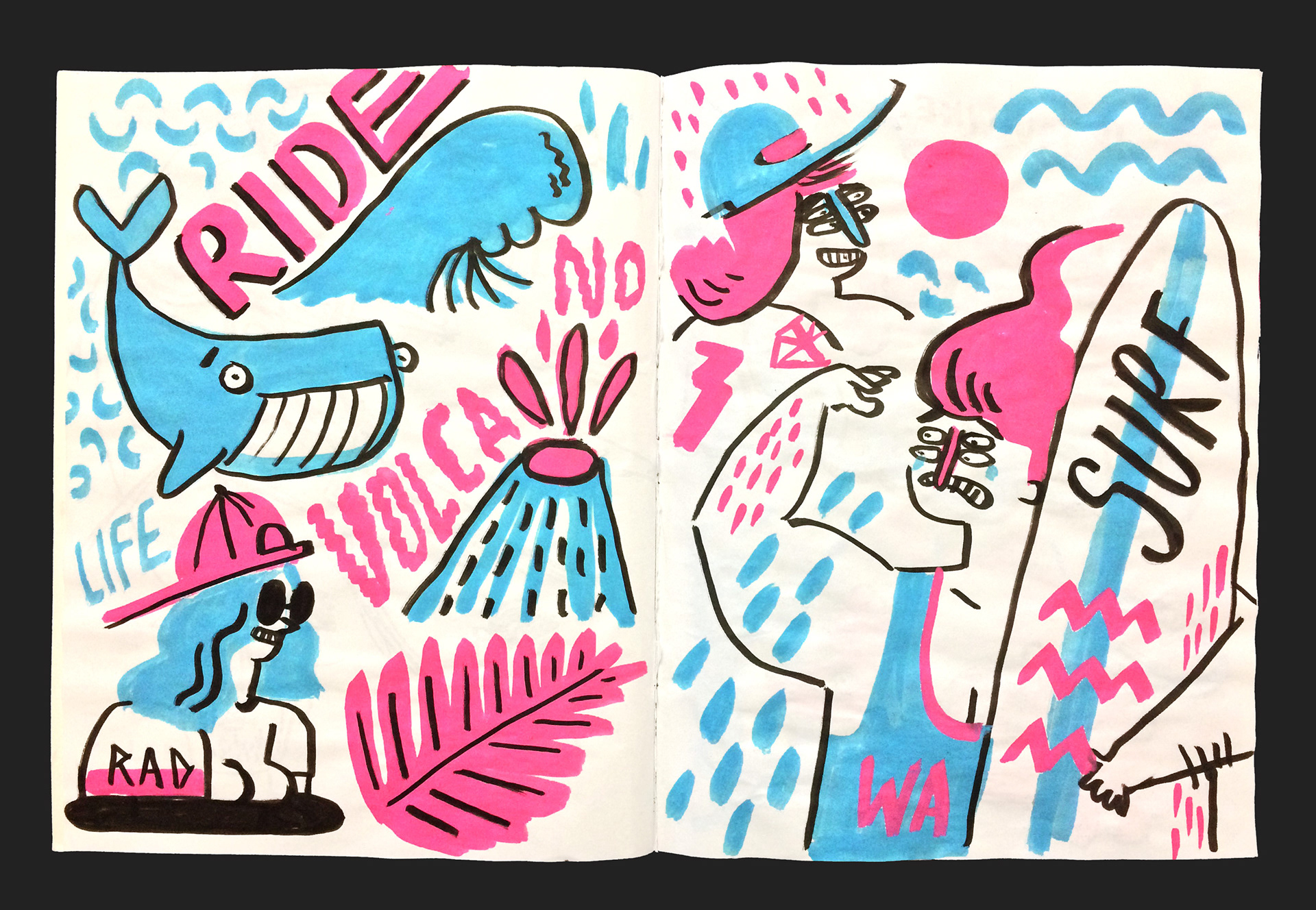 A glimpse inside my posca pen sketchbooks, exploring hand drawn typography, characters and a simple palette.